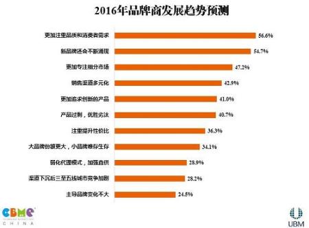 2016年,56.6%的品牌商認(rèn)為需更加注重品質(zhì)和消費者需求,位列品牌商發(fā)展趨勢的第一位,排在第二和第三位的分別是:新品牌還會不斷涌現(xiàn),以及更加專注細(xì)分市場。這顯示在激烈的競爭中品牌商正回歸本質(zhì),聚焦品質(zhì)與消費者需求。